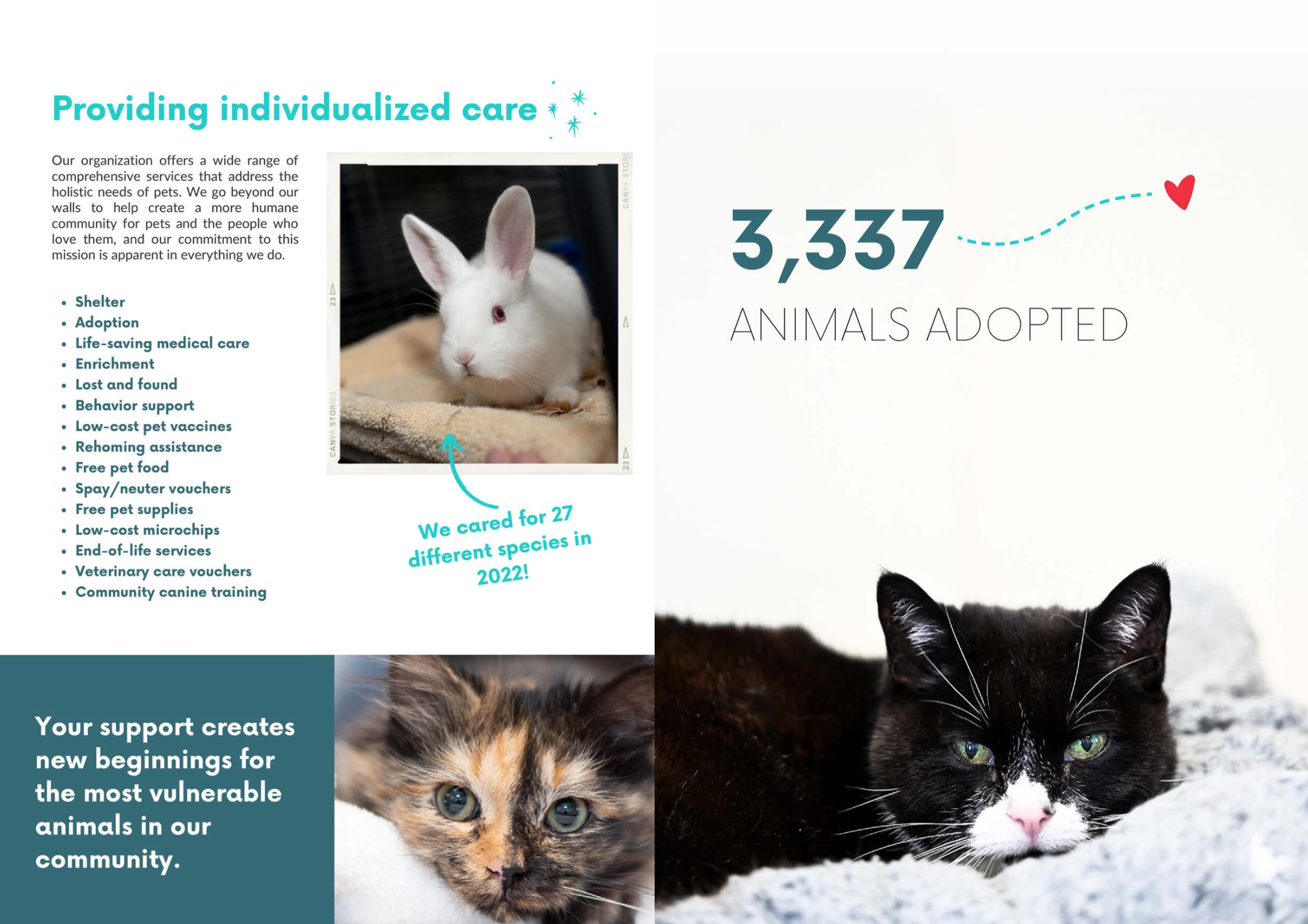 I wrote, photographed, and designed this end-of-year Impact Report, blending storytelling, data, and visuals to highlight the organization’s achievements and donor support. (Some pages omitted here due to space.)