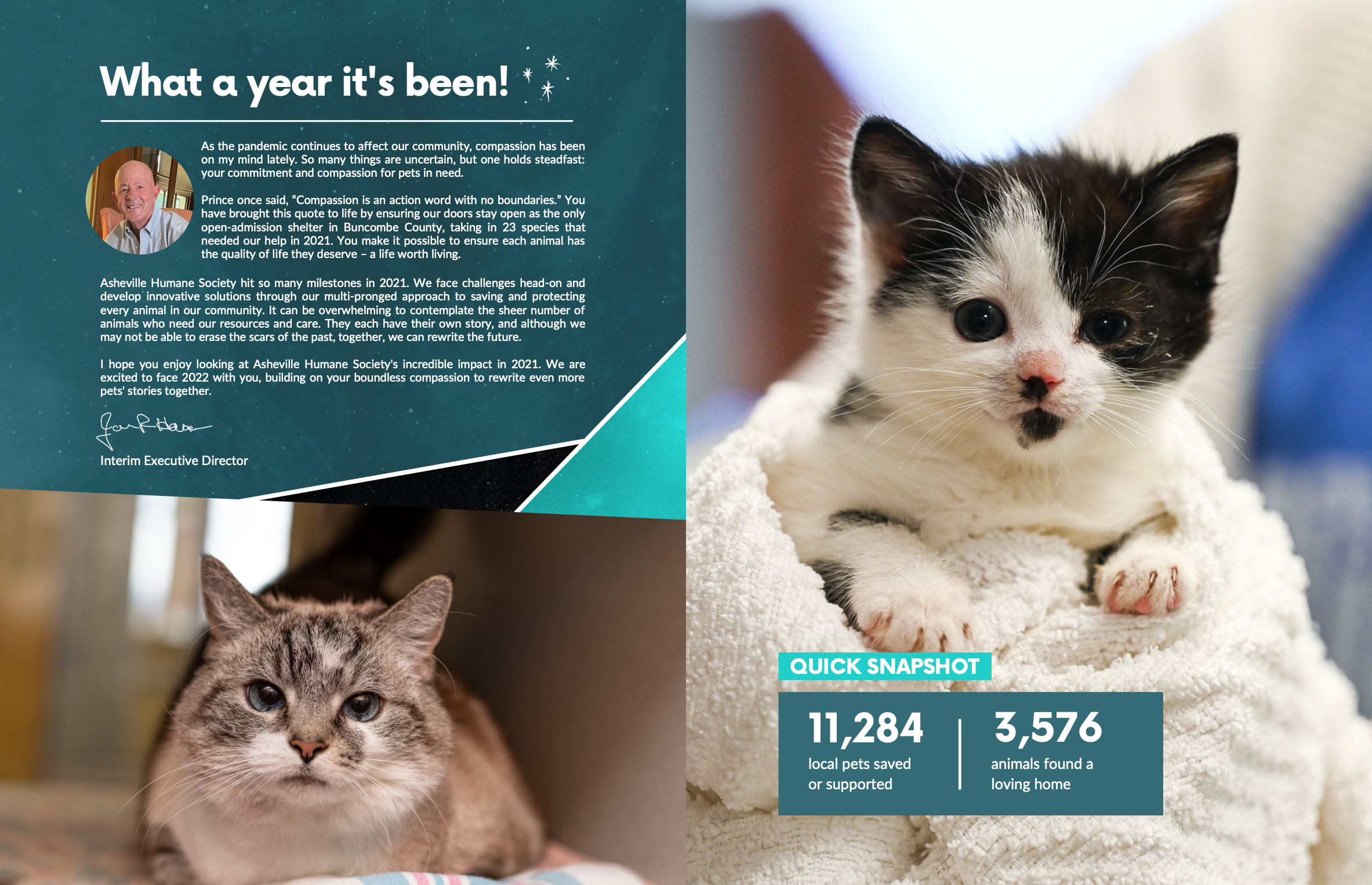 I wrote, photographed, and designed this end-of-year Impact Report, blending storytelling, data, and visuals to highlight the organization’s achievements and donor support. (Some pages omitted here due to space.)